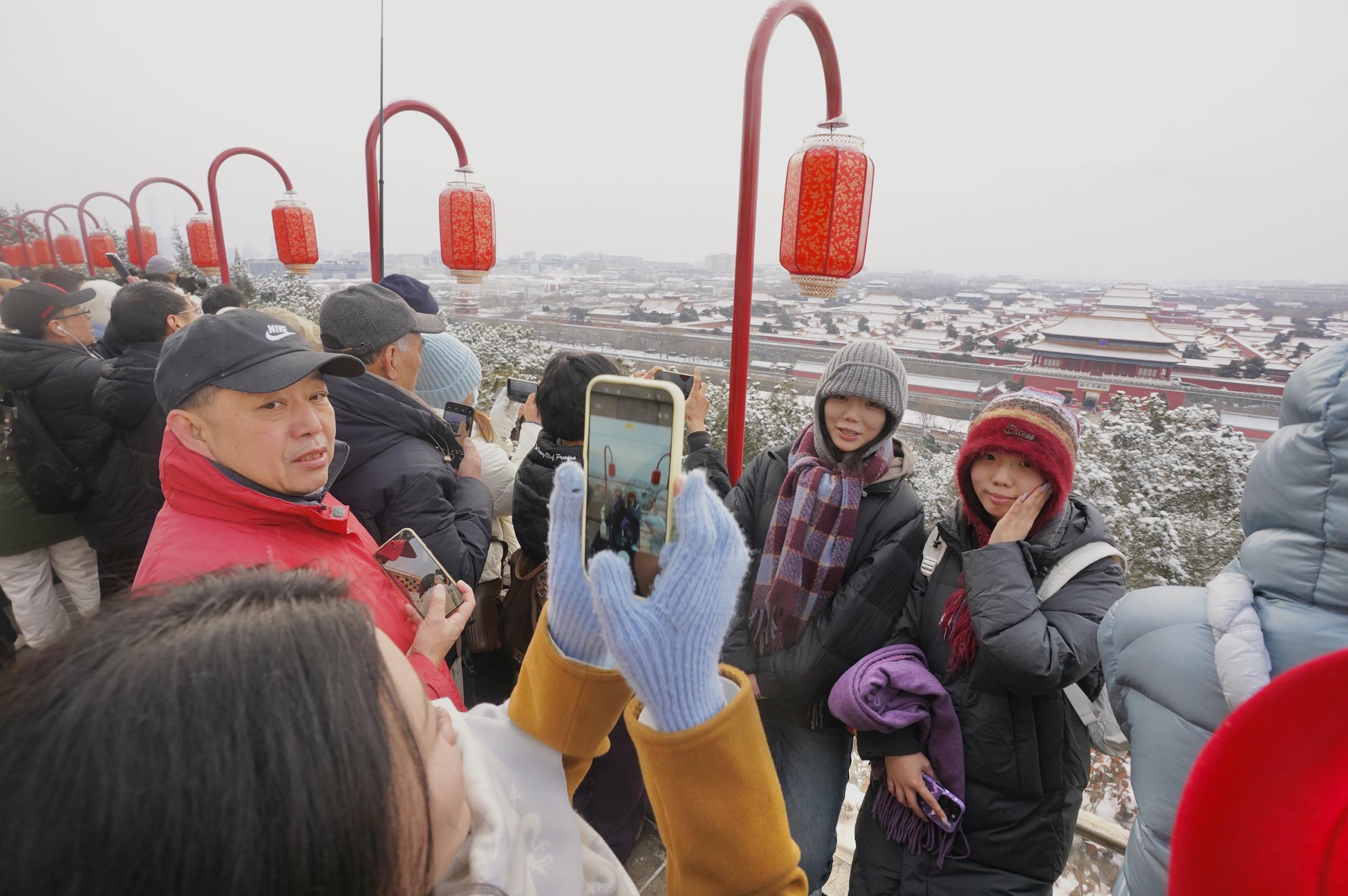 1月18日,雪后初晴。景山公园万春亭下,市民登高远眺贝格富配资,尽情欣赏北京雪后美景。